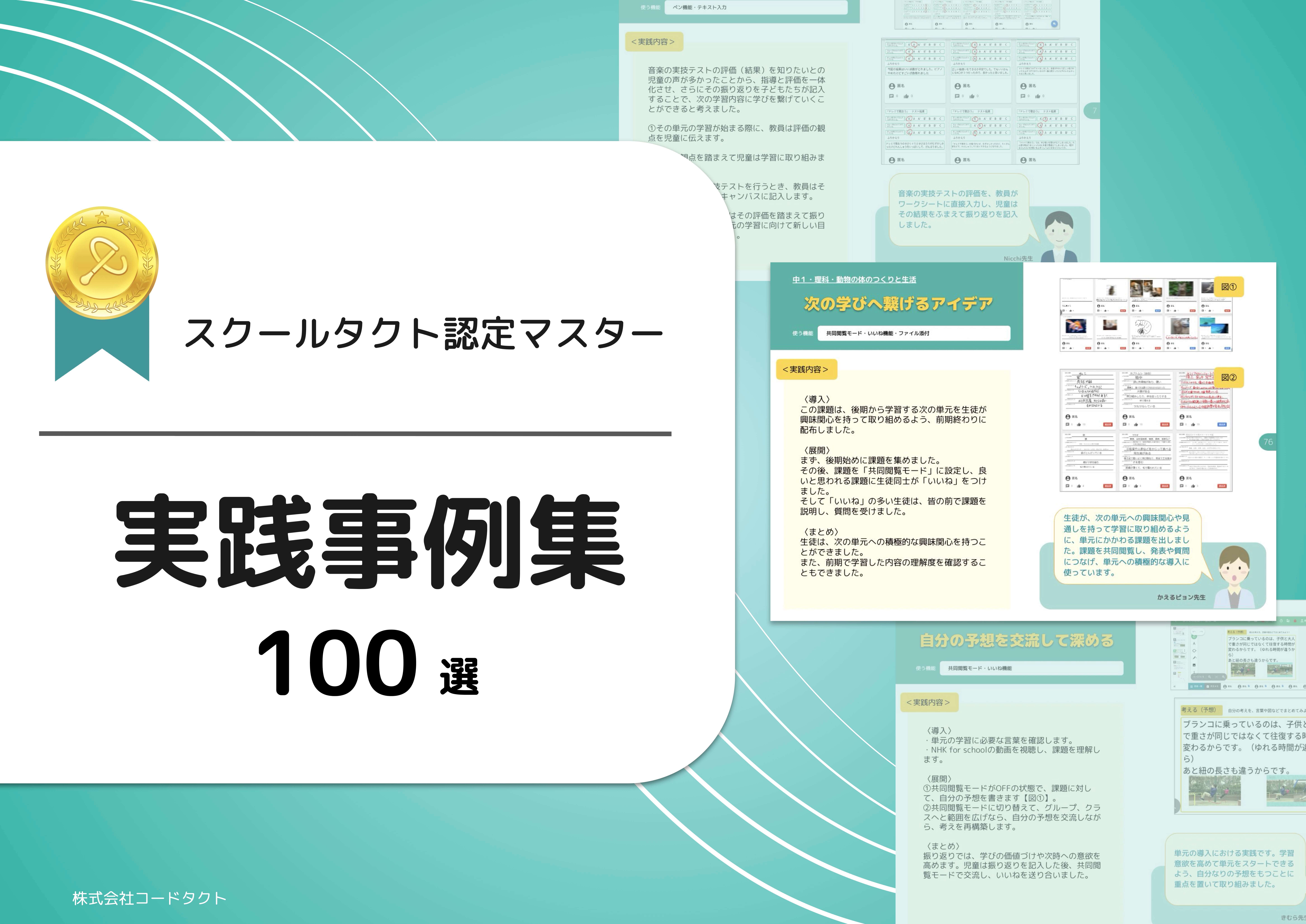 2023年度に実施したスクールタクト認定マスター第1期に寄せられた授業実践を集めた事例集です。学年や校種を問わずお使いいただけます。