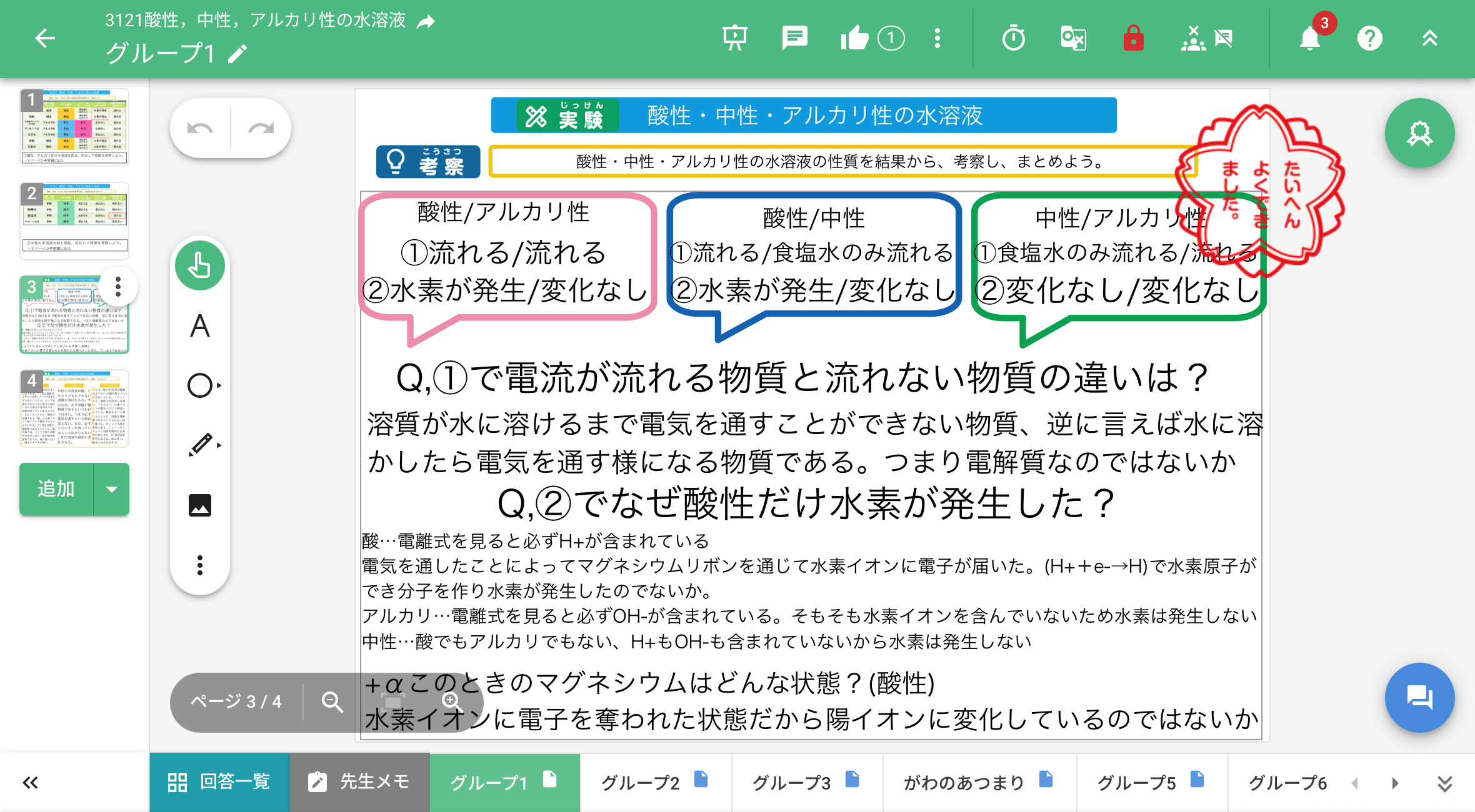グループでの実験結果を共同閲覧モードで共有し、協働で考察を深める実践です。
