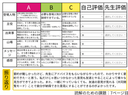また、授業場面に応じて使い分けるために、「計画・振り返りのための課題」と「読解のための課題」の2種類を配布しています