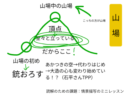 ・第6時の冒頭では、新しい読みの観点である「情景描写」に関する一斉指導(ミニレッスン)を行いました。第7時でも第6時の児童の様子を踏まえて情景描写に関する一斉指導を行いました。