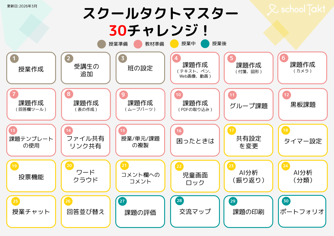 スクールタクトをマスターするための30の項目をまとめた資料です。